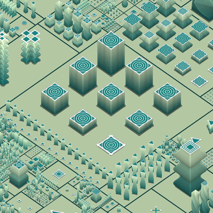 Exploration of color and geometry in its minimal expression inspired by architectural brutalism and street art photography.