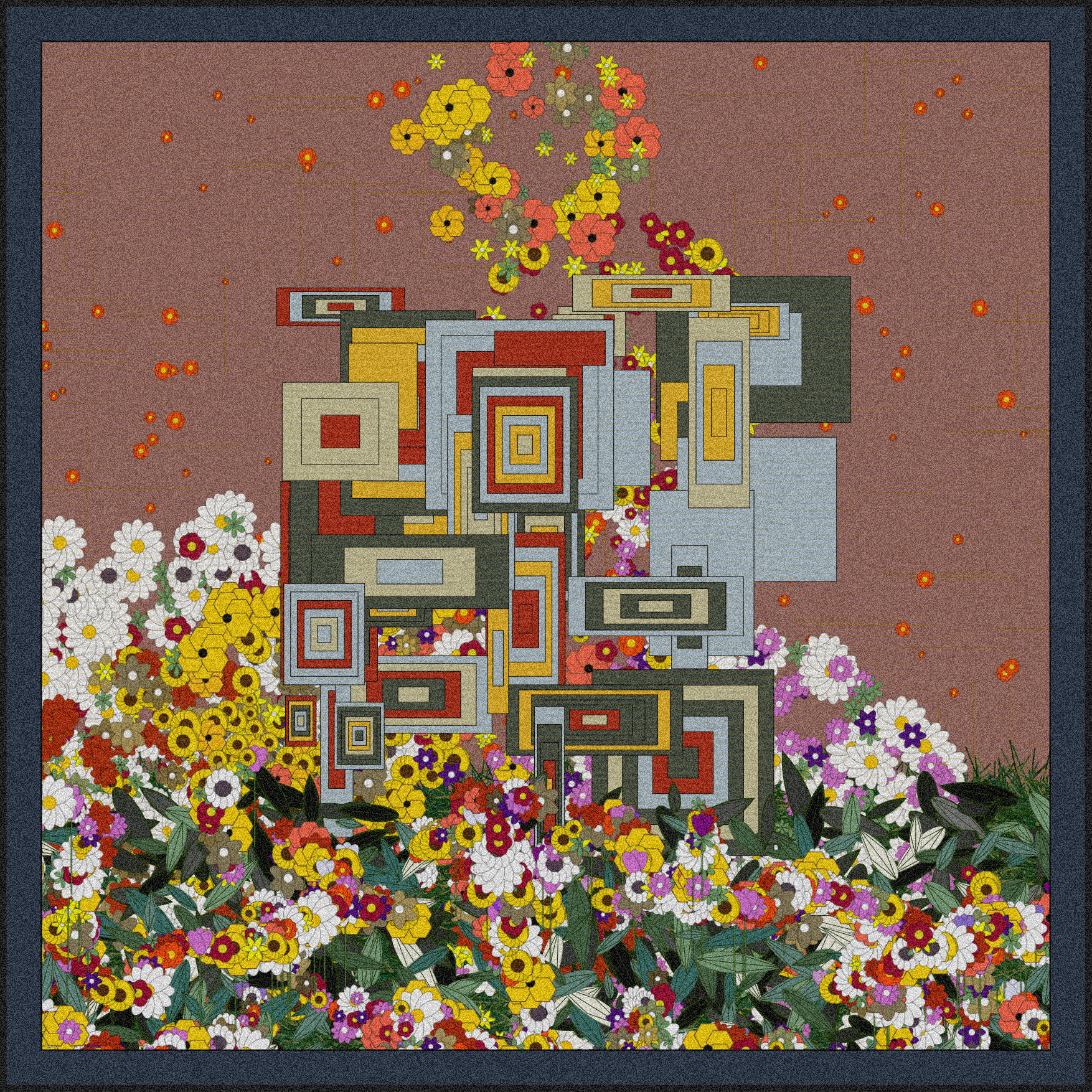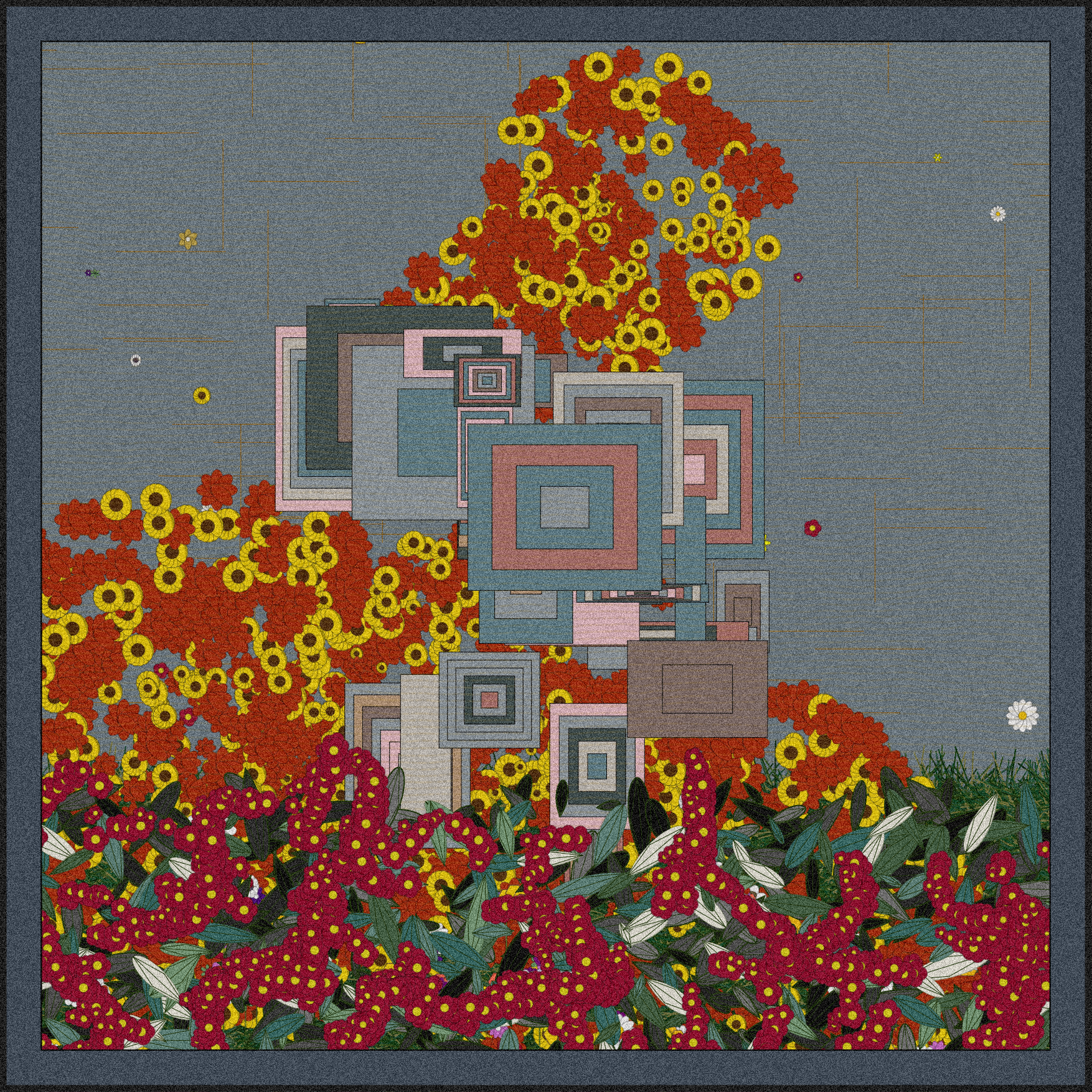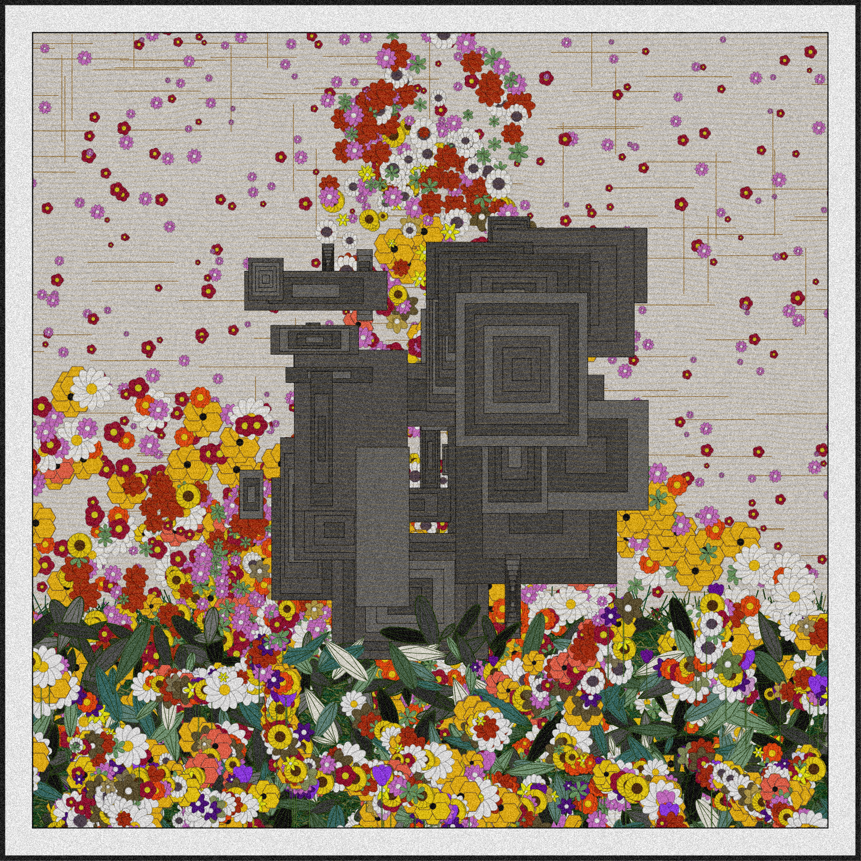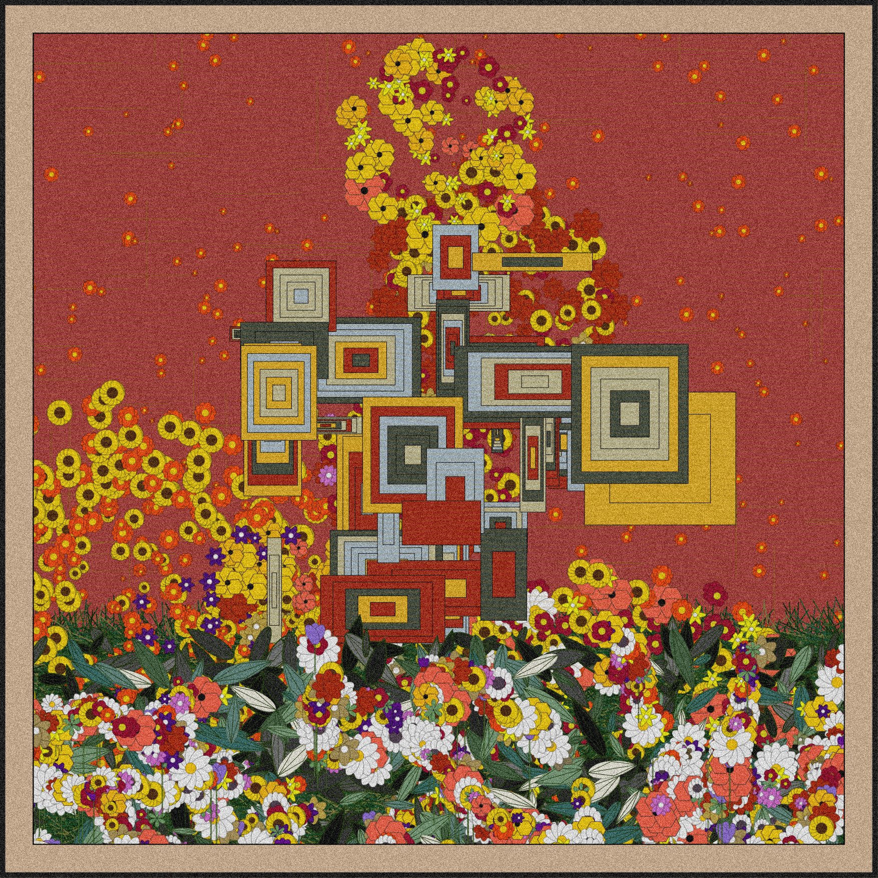 The collection features a rich floral tapestry, reflecting the lush gardens seen in "The Kiss", where digital blooms are not just visual elements but symbols of growth and vitality, metaphorically representing the thriving convergence of art and technology.
